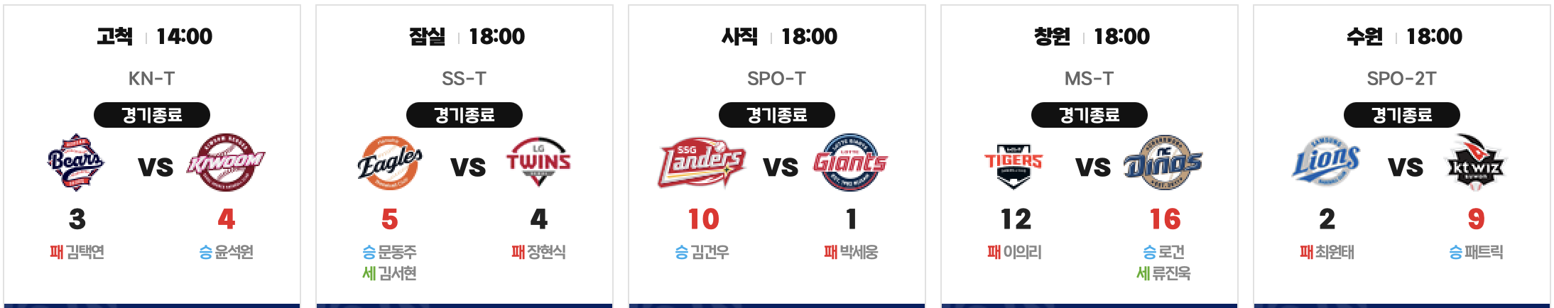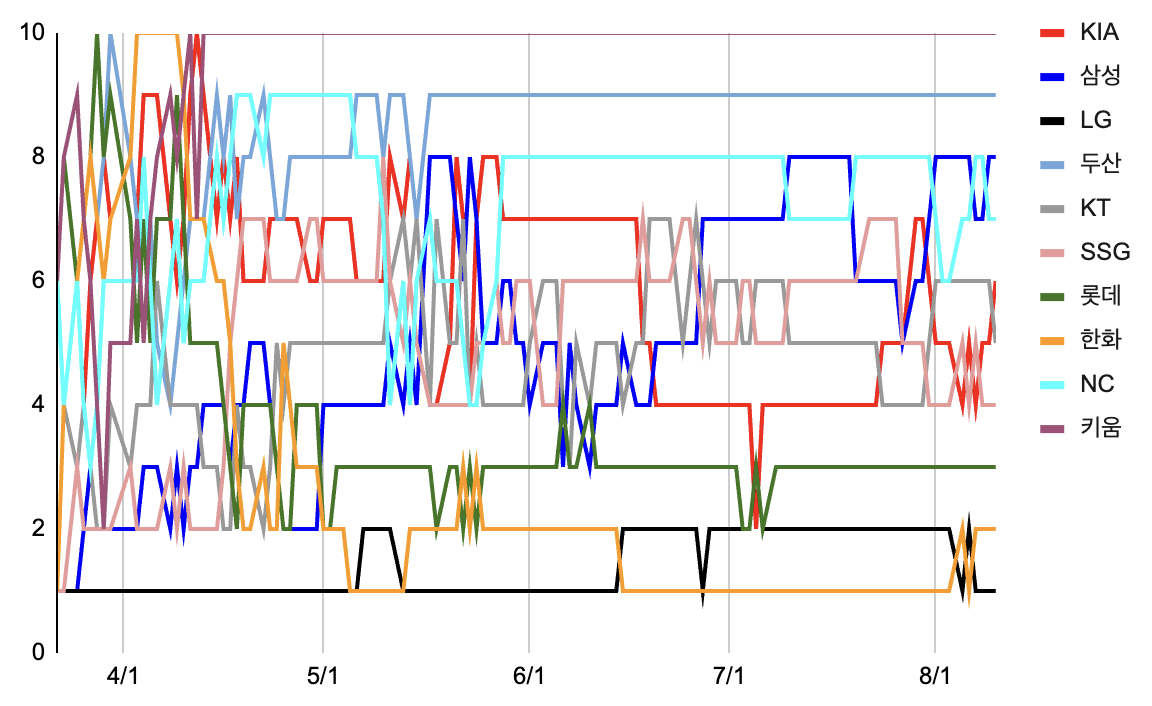 2025년 8월 10일 오늘의 KBO입니다.
