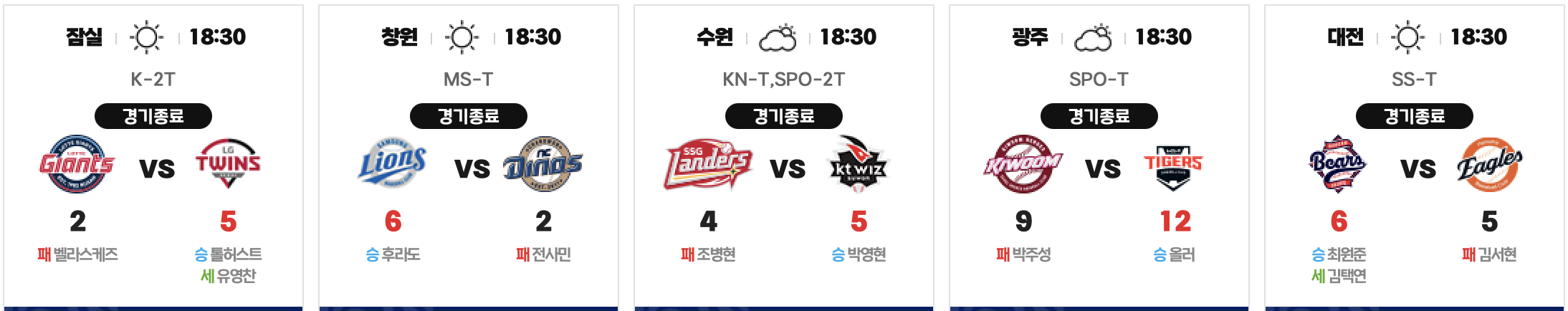 2025년 8월 19일 오늘의 KBO입니다.