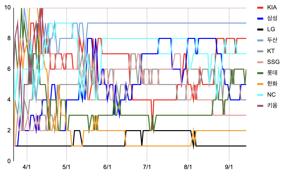| 3 | SSG | 130 | 66 | 60 | 4 | 0.524 | 12 | 1패 |