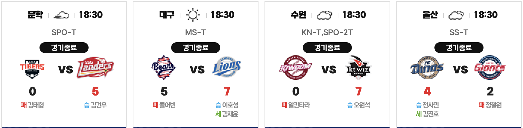 '오원석 호투' KT, 키움 7-0 완파…단독 5위 유지 NC는 갈 길 바쁜 롯데 제압…반 경기 차 추격 프로야구 SSG 랜더스가 KIA 타이거즈를 완파하고 3위 굳히기에 나섰다.SSG는 23일 인천 SSG 랜더스필드에