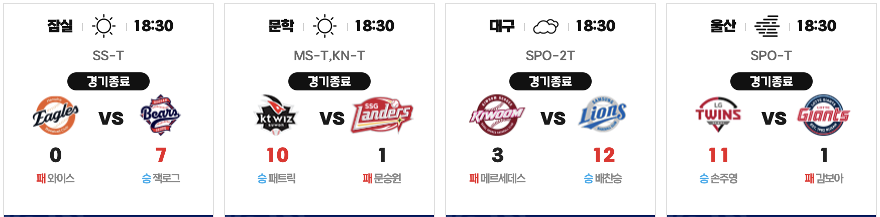 2025년 9월 25일 오늘의 KBO입니다.