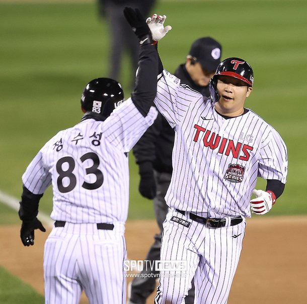'류현진 무너뜨린 LG 벌써 KS 2승' 우승 확률 90.5% 잡았다…문보경 홈런+5타점 맹활약 - SPOTV NEWS