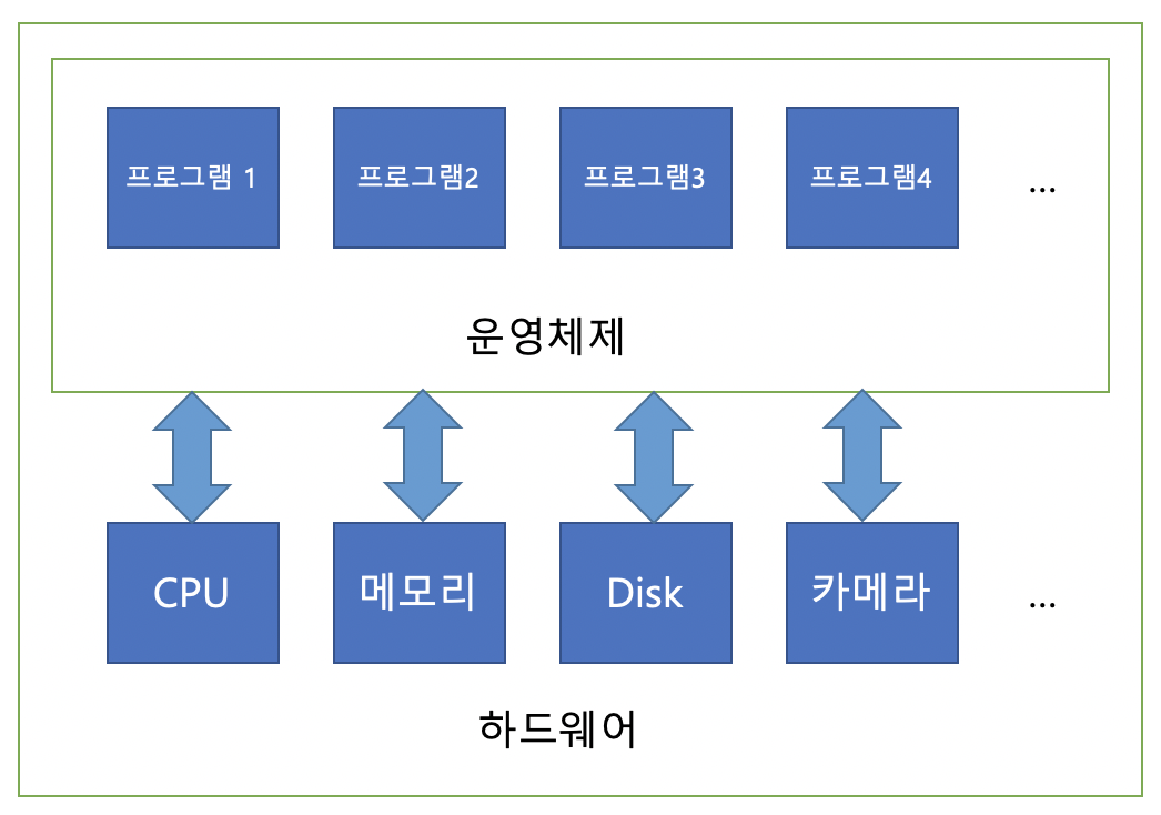 따라서 소프트웨어인 프로그램을 만들 때 하드웨어에서 제공하는 기능을 잘 활용하는 것이 하드웨어에서 효율적으로 잘 실행할 수 있는 근본적인 방법입니다. 하지만 모든 소프트웨어가 하드웨어에서 제공하는 기능을 직접 제어(활용)하는 것은 하드웨어 입장에서는 매우 부담되는 일입니다. 그리고 프로그램을 개발하는 개발자 입장에서도 역시 부담이 되는 일입니다.