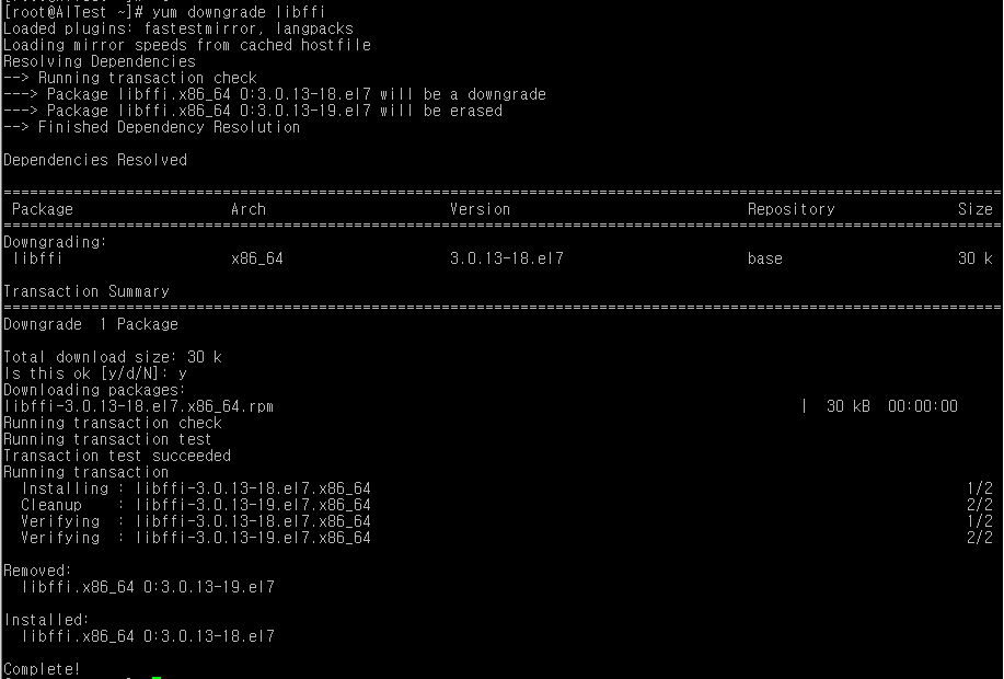| yum downgrade libffi |