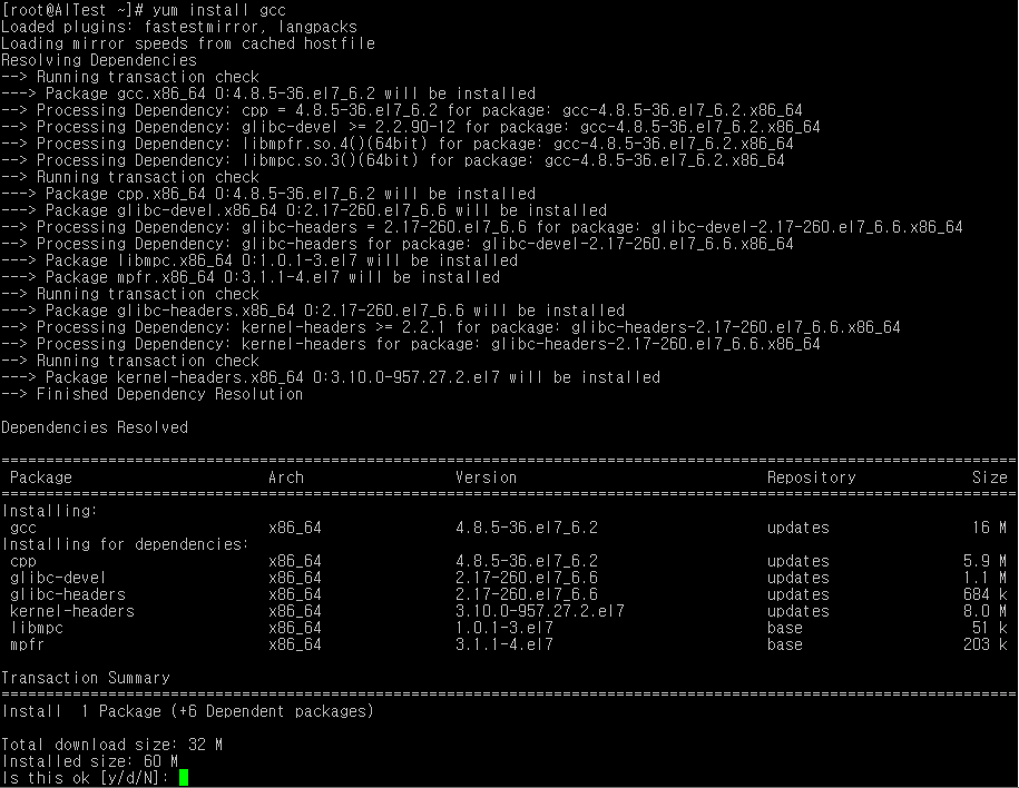 Is this ok [y/d/N]: 에서 y를 누르면 제대로 설치가 됩니다.