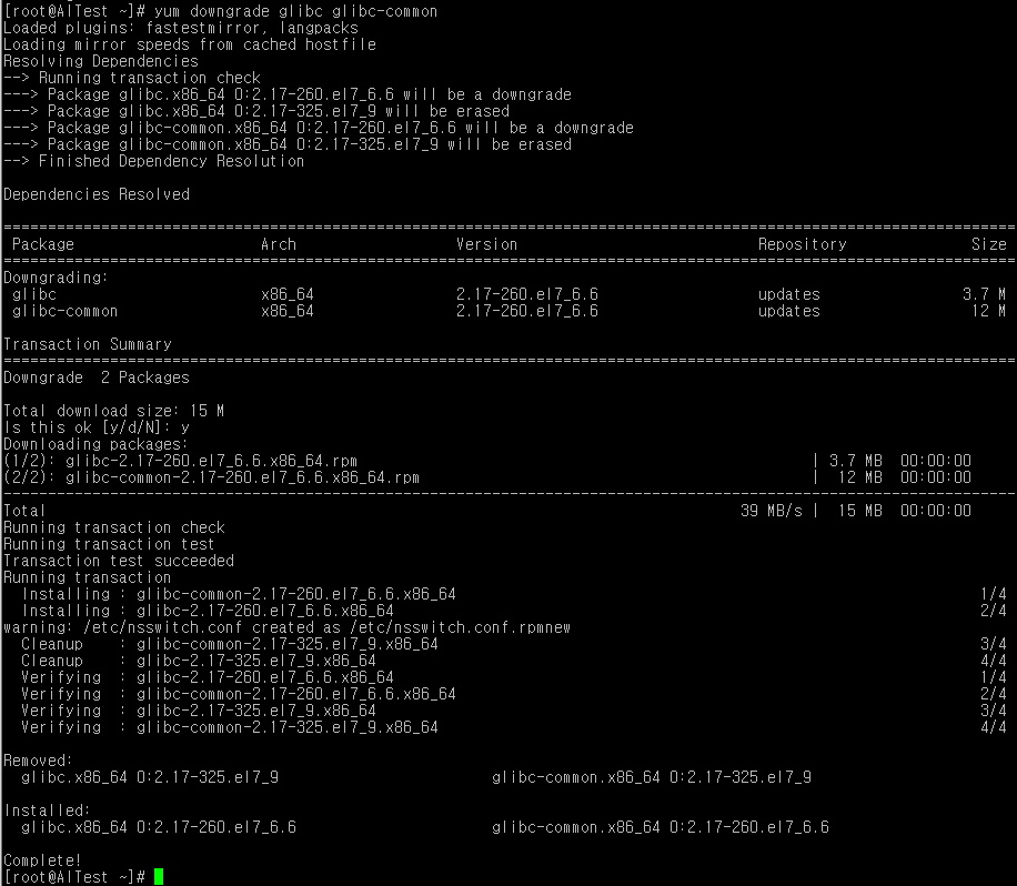 | yum downgrade glibc glibc-common |